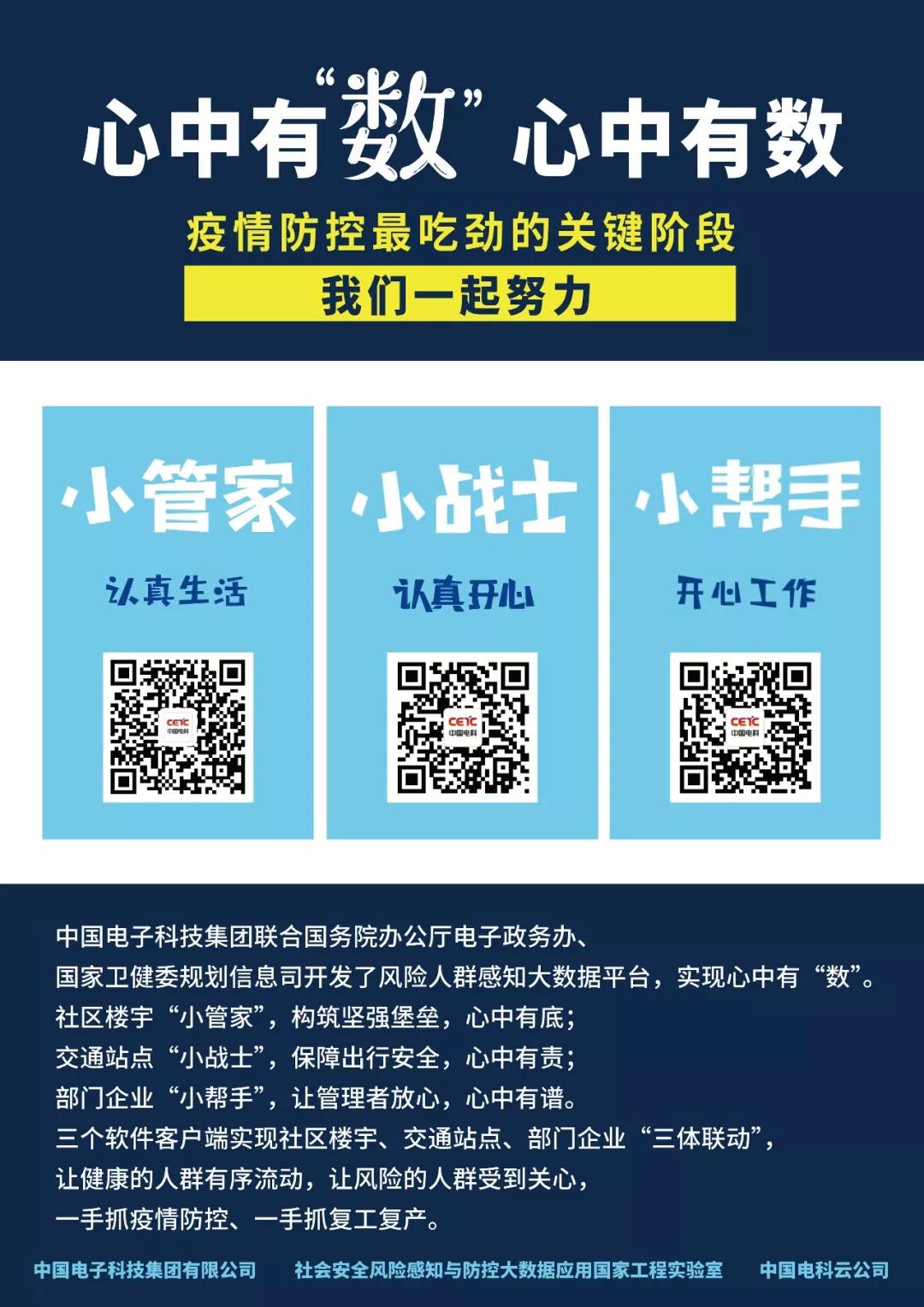疫情(qing)防控(kong)關(guan)鍵時期,中國電科火(huo)速上線,推出疫情(qing)防控(kong)和復工復產三款軟件。