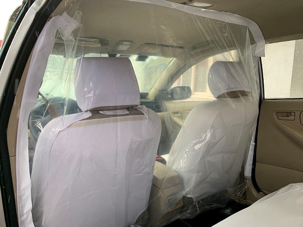 這種防(fang)護(hu)隔離膜是廠家(jia)結(jie)合天(tian)津出租車(che)市場的(de)車(che)型(xing)定制(zhi)設計,材(cai)料由聚氯乙烯薄膜制(zhi)成,通(tong)過魔(mo)術貼(tie)使(shi)薄膜與車(che)內(nei)頂(ding)、前排(pai)座(zuo)椅背后、后座(zuo)腳(jiao)墊等部位貼(tie)合連接,使(shi)車(che)廂前后形成相對(dui)獨立的(de)空間,能有(you)效阻斷病毒飛沫傳播。