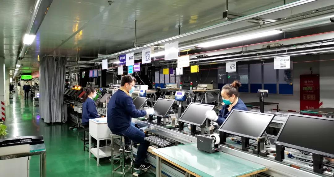 在北京市(shi)經濟技(ji)術開發區(qu),中國電子旗(qi)下冠捷(jie)科(ke)技(ji)北京分(fen)部的(de)廠(chang)區(qu)內,穿(chuan)著(zhu)標準作業服裝的(de)工人(ren)們戴著(zhu)口罩,井然有(you)序地守在生產(chan)流水線旁;智能化(hua)生產(chan)設備在高速運轉(zhuan),原本標配700人(ren)左(zuo)右的(de)廠(chang)區(qu),如今已有(you)887位員工正為4月份的(de)訂單(dan)緊張忙碌著(zhu)。