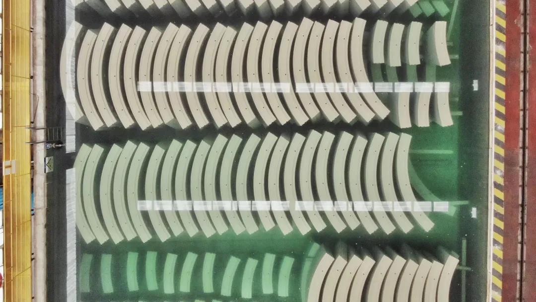 走(zou)近(jin)看(kan),一片(pian)片(pian)蒸養后的(de)地鐵(tie)管片(pian)冒著(zhu)縷(lv)縷(lv)蒸氣,從生產(chan)線上魚貫(guan)而(er)出(chu),一陣(zhen)陣(zhen)信(xin)息(xi)提示音在(zai)嘈(cao)雜(za)空間(jian)里顯(xian)得格外清脆……位于(yu)天津(jin)市東麗區的(de)中交集團所屬中交一航局管片(pian)預制(zhi)廠(chang)(chang)(chang),天津(jin)地鐵(tie)11號線(一期)所有(you)20個盾構區間(jian)的(de)管片(pian)預制(zhi)正(zheng)火熱進行,“智(zhi)慧化”的(de)生產(chan)流(liu)程,讓(rang)這座廠(chang)(chang)(chang)房搖身一變(bian)成(cheng)了“智(zhi)慧工廠(chang)(chang)(chang)”。