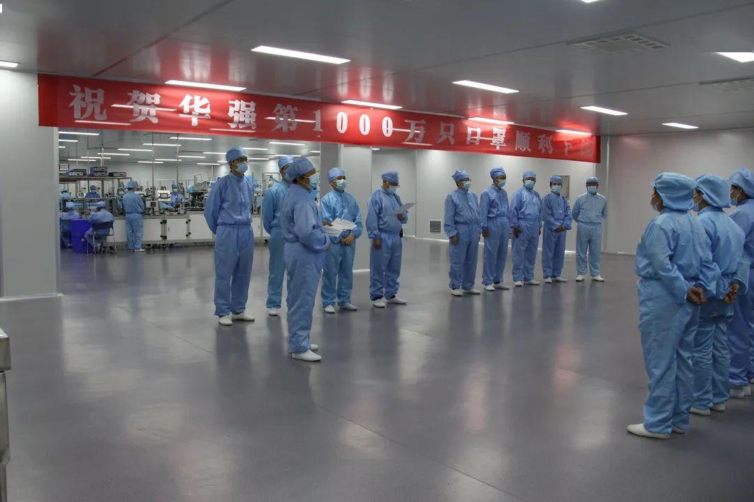 4月30日(ri),兵器裝(zhuang)備集團所屬湖北華(hua)強在(zai)宜昌(chang)猇亭分公(gong)司口罩生產現場舉(ju)行生產第1000萬(wan)只口罩下線暨(ji)日(ri)產100萬(wan)只口罩誓師(shi)大會。
