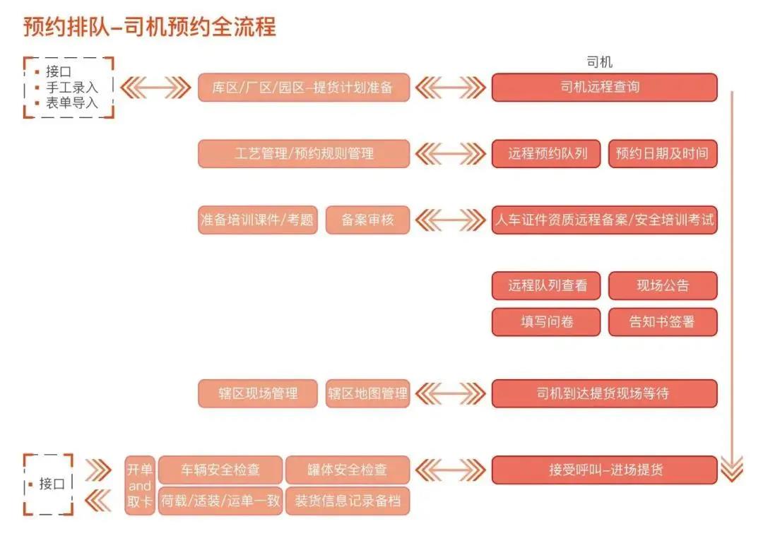 通過“車輛預約(yue)排(pai)隊系統”,工(gong)廠/庫區(qu)可(ke)根據自(zi)(zi)己(ji)業務和生(sheng)產情況(kuang),自(zi)(zi)主開放預約(yue)裝卸貨的時間段(duan);司(si)機可(ke)提前查詢裝卸貨計劃(hua)預約(yue)裝卸貨時間,有效化解(jie)司(si)機無(wu)計劃(hua)、無(wu)秩序(xu)涌向(xiang)園區(qu)、庫區(qu)所(suo)帶來的車輛積壓(ya)安全隱(yin)患(huan)。