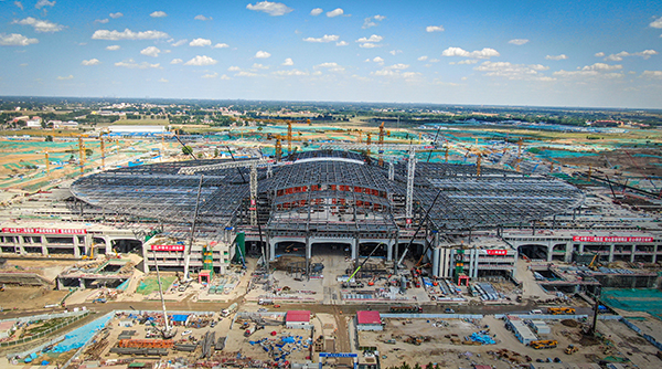 目前,京雄車場45600平(ping)方(fang)米(mi)的站(zhan)臺混(hun)凝(ning)土(tu)結(jie)構(gou),18000平(ping)方(fang)米(mi)高架候(hou)車廳(ting)鋼(gang)結(jie)構(gou)樓(lou)層板,606米(mi)跨度、覆蓋(gai)面(mian)積(ji)12萬平(ping)方(fang)米(mi)的鋼(gang)結(jie)構(gou)屋蓋(gai)已全(quan)部(bu)施工完成。