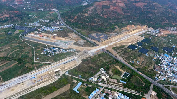 甘莊隧道出口連接著正在建設中的元江火車站。
