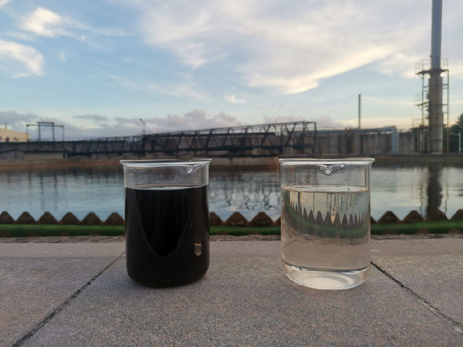電子束治污技術水質處理前后對比(左邊處理前,右邊處理后)。