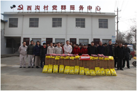 企業領導(dao)到西溝(gou)村(cun)慰(wei)問,幫助貧困戶解決困難,幫助銷(xiao)售農(nong)產品。