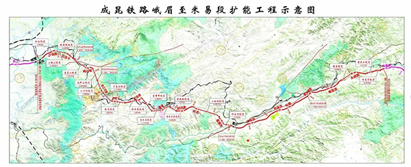 目前(qian)對成(cheng)昆(kun)鐵路進(jin)行的擴能改(gai)造,主(zhu)要是(shi)增建二線(xian)以(yi)及新建雙線(xian),又(you)稱成(cheng)昆(kun)鐵路復(fu)線(xian)工(gong)程(cheng)(cheng),分為(wei)成(cheng)都至峨眉段(duan)(duan)(duan)(duan)、峨眉至米易段(duan)(duan)(duan)(duan)、米易至攀枝花(hua)段(duan)(duan)(duan)(duan)、永仁至廣通段(duan)(duan)(duan)(duan)、廣通至昆(kun)明段(duan)(duan)(duan)(duan),整個工(gong)程(cheng)(cheng)采取分段(duan)(duan)(duan)(duan)建設的方式進(jin)行改(gai)造。該(gai)工(gong)程(cheng)(cheng)是(shi)國(guo)家西(xi)部大開發重點(dian)工(gong)程(cheng)(cheng)建設項目,其中峨米段(duan)(duan)(duan)(duan)全(quan)長386.334公(gong)里,是(shi)全(quan)線(xian)修(xiu)建難度最大、里程(cheng)(cheng)最長的一段(duan)(duan)(duan)(duan),所處位(wei)置是(shi)有著“地質(zhi)博物館”之(zhi)稱的攀西(xi)地區(qu),全(quan)段(duan)(duan)(duan)(duan)共(gong)有橋梁(liang)140余(yu)座、隧道40余(yu)座,橋隧比達到(dao)73%。