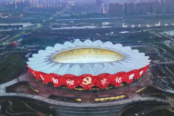 項目在連續(xu)雨澇(lao)情況下12天(tian)完(wan)(wan)成(cheng)(cheng)(cheng)2萬(wan)(wan)平方(fang)(fang)米(mi)臨建(jian)、12臺塔吊,1個(ge)(ge)(ge)(ge)月(yue)完(wan)(wan)成(cheng)(cheng)(cheng)了15萬(wan)(wan)立方(fang)(fang)米(mi)土方(fang)(fang)開挖及外運,3個(ge)(ge)(ge)(ge)月(yue)完(wan)(wan)成(cheng)(cheng)(cheng)了2782根長螺旋鉆(zhan)孔壓灌樁(zhuang),4個(ge)(ge)(ge)(ge)月(yue)完(wan)(wan)成(cheng)(cheng)(cheng)了15萬(wan)(wan)平方(fang)(fang)米(mi)的主(zhu)體結(jie)構施工,3個(ge)(ge)(ge)(ge)月(yue)完(wan)(wan)成(cheng)(cheng)(cheng)了28根雙向傾斜(xie)超高清(qing)水混凝土V型柱,3個(ge)(ge)(ge)(ge)月(yue)完(wan)(wan)成(cheng)(cheng)(cheng)1.2萬(wan)(wan)噸(dun)鋼結(jie)構吊裝(zhuang)任(ren)務,一(yi)個(ge)(ge)(ge)(ge)半月(yue)完(wan)(wan)成(cheng)(cheng)(cheng)8828塊預制(zhi)看臺板吊裝(zhuang)作業(ye),90天(tian)完(wan)(wan)成(cheng)(cheng)(cheng)5萬(wan)(wan)平方(fang)(fang)米(mi)金屬屋面(mian),75天(tian)完(wan)(wan)成(cheng)(cheng)(cheng)2.4萬(wan)(wan)平方(fang)(fang)米(mi)罩棚(peng)鋁(lv)板幕墻,用(yong)實力創造了西安速度。
