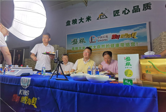 遼寧石油相關負責人、大連凱洋集團、盤糧集團主要負責人在直播間內現場試吃盤錦大米