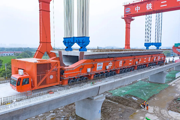 近日,中(zhong)國(guo)(guo)鐵(tie)建所屬鐵(tie)五院牽頭,聯合中(zhong)鐵(tie)十一局集(ji)團研發實施(shi)的千(qian)(qian)噸級(ji)分體式架(jia)橋機(ji)、過隧(sui)運梁車在(zai)南沿江(jiang)城際鐵(tie)路投(tou)入(ru)(ru)使用。這(zhe)是中(zhong)國(guo)(guo)鐵(tie)建千(qian)(qian)噸級(ji)高(gao)(gao)(gao)鐵(tie)施(shi)工裝(zhuang)備產業(ye)鏈(lian)(lian)中(zhong)最后2套(tao)裝(zhuang)備,在(zai)此之(zhi)前已(yi)研發制造并投(tou)入(ru)(ru)使用了A型搬(ban)梁機(ji)、B型搬(ban)梁機(ji)、輪軌式提梁機(ji)、運架(jia)一體機(ji),共同組成了千(qian)(qian)噸級(ji)高(gao)(gao)(gao)鐵(tie)施(shi)工裝(zhuang)備完整產業(ye)鏈(lian)(lian),標志(zhi)著中(zhong)國(guo)(guo)鐵(tie)建在(zai)中(zhong)國(guo)(guo)高(gao)(gao)(gao)鐵(tie)邁入(ru)(ru)時(shi)速“400公里”時(shi)代,率先實現該領域全產業(ye)鏈(lian)(lian)布局。