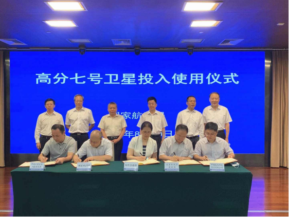 自然資源部、住房和城鄉建設部、國家統計局、中國衛星發射測控系統部、中國航天科技集團有限公司共同簽署高分七號衛星在軌投入使用證書
