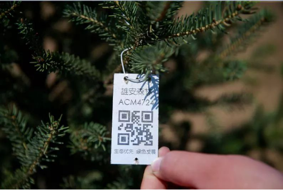 現場每(mei)棵苗木(mu)上都掛著(zhu)(zhu)(zhu)一(yi)(yi)個帶有二維(wei)碼的鋁制小(xiao)標牌,并統一(yi)(yi)朝著(zhu)(zhu)(zhu)向北的方(fang)向,上面寫著(zhu)(zhu)(zhu)“雄安森(sen)林(lin)(lin)”。這就是(shi)它們(men)的專屬“出(chu)生證”“身份證”和“健康證”,二維(wei)碼鏈(lian)接(jie)著(zhu)(zhu)(zhu)雄安森(sen)林(lin)(lin)大(da)數(shu)據系(xi)統,通過掃碼可(ke)查(cha)詢苗木(mu)的樹種、規格、生長信息(xi)等,就連(lian)何時出(chu)圃、哪天種植、GPRS定位(wei)等信息(xi)都一(yi)(yi)一(yi)(yi)記錄(lu)在內,可(ke)以實現對苗木(mu)全生命過程監控。
