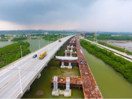 雷(lei)州灣(wan)上,碧(bi)波(bo)萬頃,吊機擎天;大橋(qiao)兩側,紅樹(shu)搖曳,郁郁蔥(cong)(cong)蔥(cong)(cong)。中交一航(hang)局(ju)承建的廣東(dong)(dong)玉湛高速公路(lu)東(dong)(dong)海島特(te)大橋(qiao)跨越國(guo)家級紅樹(shu)林(lin)自然(ran)保護區,區內有紅樹(shu)林(lin)25種、鳥類194種、貝類130種、魚類139種。