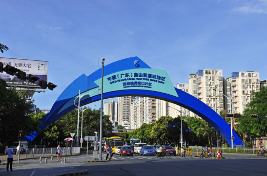 橫跨蛇口街頭的前海蛇口自貿片區大拱門。