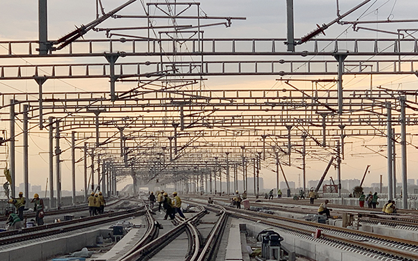 在施(shi)(shi)(shi)工(gong)(gong)(gong)過(guo)程中,參(can)建(jian)員(yuan)工(gong)(gong)(gong)以(yi)“防疫情 保增長”勞(lao)動競(jing)賽為(wei)契機,不斷優化施(shi)(shi)(shi)工(gong)(gong)(gong)組(zu)織方案(an),科學(xue)合(he)理配(pei)備(bei)施(shi)(shi)(shi)工(gong)(gong)(gong)資源(yuan),全面兌現各個關(guan)鍵施(shi)(shi)(shi)工(gong)(gong)(gong)節點。同時(shi),項目部(bu)著重(zhong)加大科研投入(ru),聯合(he)有(you)關(guan)單位研發出應用(yong)接觸網(wang)三型智(zhi)(zhi)能(neng)裝備(bei)(接觸網(wang)支(zhi)柱組(zu)立、腕臂(bei)安裝、參(can)數檢測及(ji)吊弦(xian)標定智(zhi)(zhi)能(neng)設備(bei)),以(yi)及(ji)吊弦(xian)、腕臂(bei)自動化預配(pei)生產(chan)線,全面提(ti)高了(le)接觸網(wang)預配(pei)精度、生產(chan)效率、施(shi)(shi)(shi)工(gong)(gong)(gong)質量,為(wei)我(wo)國(guo)高鐵“四電”集成智(zhi)(zhi)能(neng)化施(shi)(shi)(shi)工(gong)(gong)(gong)技術科研攻關(guan)積(ji)累(lei)了(le)寶貴經(jing)驗。