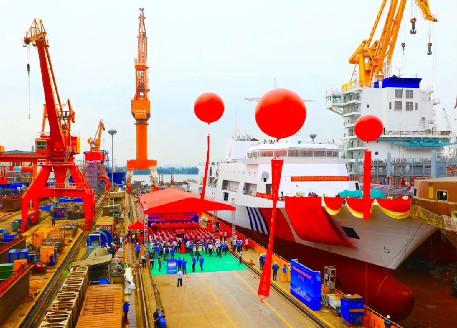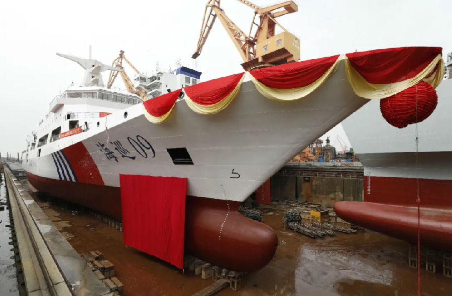 9月29日,我國規模最(zui)大(da)、裝備(bei)先(xian)進、綜合能力(li)強,具有世界領先(xian)水(shui)平的萬噸(dun)級(ji)海(hai)事巡邏船(chuan)“海(hai)巡09”號(hao),在中(zhong)國船(chuan)舶(bo)集團有限(xian)(xian)公(gong)司旗下中(zhong)船(chuan)黃(huang)埔文(wen)(wen)沖船(chuan)舶(bo)有限(xian)(xian)公(gong)司文(wen)(wen)沖廠(chang)區(qu)成(cheng)功(gong)下水(shui)。