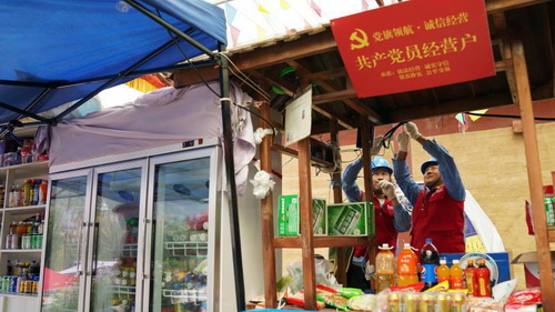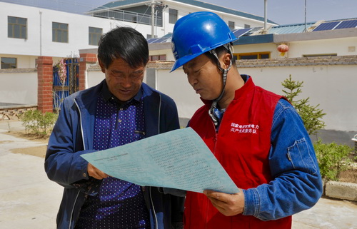 國網青海電力共產黨員服務隊上門幫助德吉村個體經營戶檢查用電設備