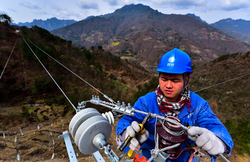 國網四川廣元供電公司員工在羅圈巖村進行電網檢修