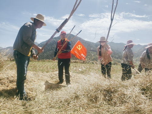 國網甘肅電力駐村干部在田間服務農戶秋收,為當地脫貧致富貢獻力量