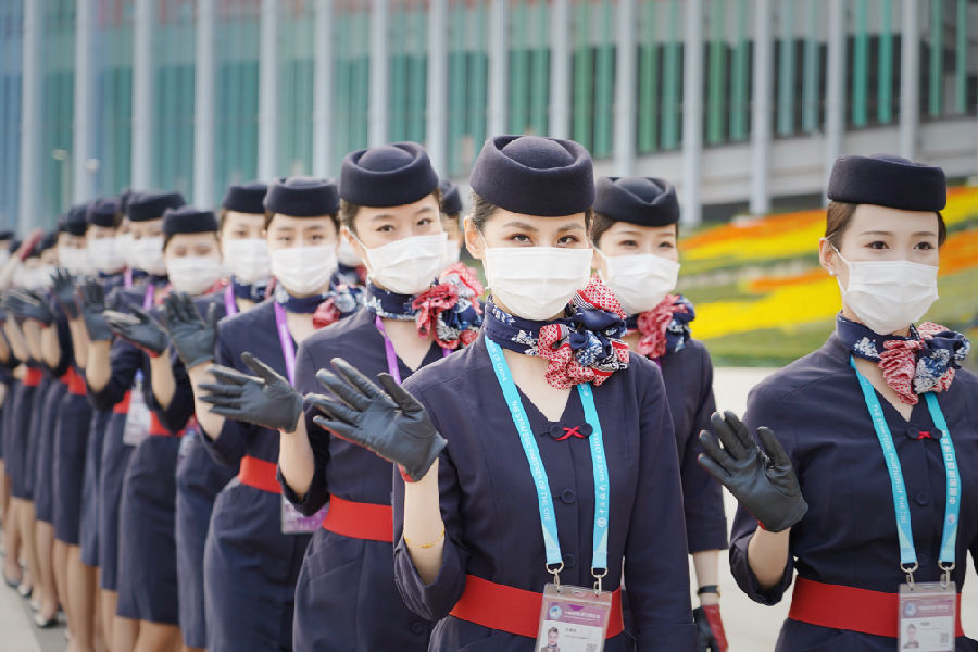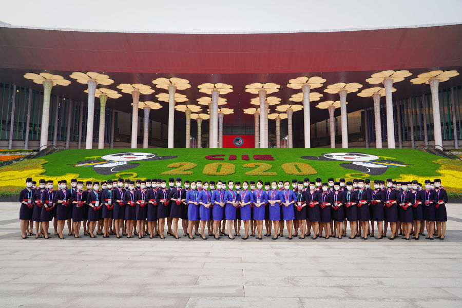 2020年11月2日,一支整齊(qi)劃一的(de)靚麗隊伍出現(xian)在上(shang)海(hai)國(guo)(guo)家會(hui)展中心。在第(di)三屆中國(guo)(guo)國(guo)(guo)際進(jin)口(kou)博(bo)(bo)覽(lan)會(hui)開幕前(qian)夕,70名東航(hang)(hang)凌(ling)(ling)燕禮儀志(zhi)愿(yuan)者齊(qi)集進(jin)博(bo)(bo)場(chang)館,再次參與(yu)到進(jin)博(bo)(bo)會(hui)的(de)各項服(fu)務(wu)保障工作中。在前(qian)兩屆進(jin)博(bo)(bo)會(hui)上(shang),這些來自“東航(hang)(hang)凌(ling)(ling)燕禮儀志(zhi)愿(yuan)服(fu)務(wu)隊”的(de)乘務(wu)員以周到、細致地服(fu)務(wu),用(yong)她們的(de)美麗與(yu)智慧(hui),向世(shi)界展示了東航(hang)(hang)品牌、民航(hang)(hang)精神(shen)、上(shang)海(hai)服(fu)務(wu)的(de)魅(mei)力。