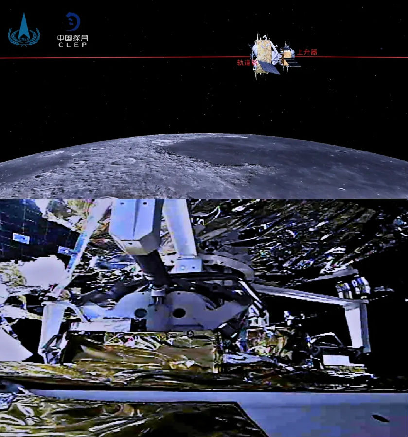 12月(yue)6日5時42分,嫦娥(e)五(wu)號上升器成功與(yu)軌(gui)道器和(he)返(fan)回器組合體交會對(dui)接,并(bing)于6時12分將樣(yang)品(pin)容(rong)器安全(quan)轉移(yi)至返(fan)回器中。至此,由中國航天科技集團(tuan)有(you)限公(gong)司研制的嫦娥(e)五(wu)號探測器實(shi)現(xian)我(wo)國首次月(yue)球(qiu)軌(gui)道交會對(dui)接與(yu)樣(yang)品(pin)轉移(yi)。