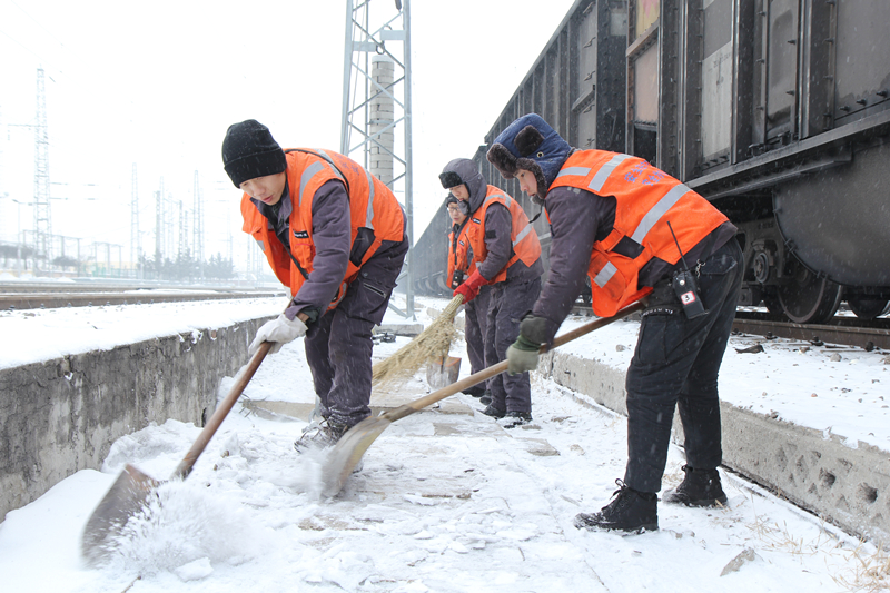 “忽如一(yi)夜(ye)春風(feng)來”,積雪略(lve)消融的檢(jian)修(xiu)作業場上,一(yi)夜(ye)之間,各種(zhong)鋼管(guan)、管(guan)線表(biao)面早已(yi)結(jie)了厚厚的一(yi)層霜(shuang)花。作為(wei)戰(zhan)斗(dou)在鐵路運輸第(di)一(yi)線的檢(jian)車員們,正戰(zhan)天(tian)地、斗(dou)風(feng)雪,在兩行鋼軌(gui)外的狹(xia)長戰(zhan)線上,揮(hui)動(dong)“金戈”,實踐著“不到最后一(yi)刻,絕不收(shou)兵”的誓言。