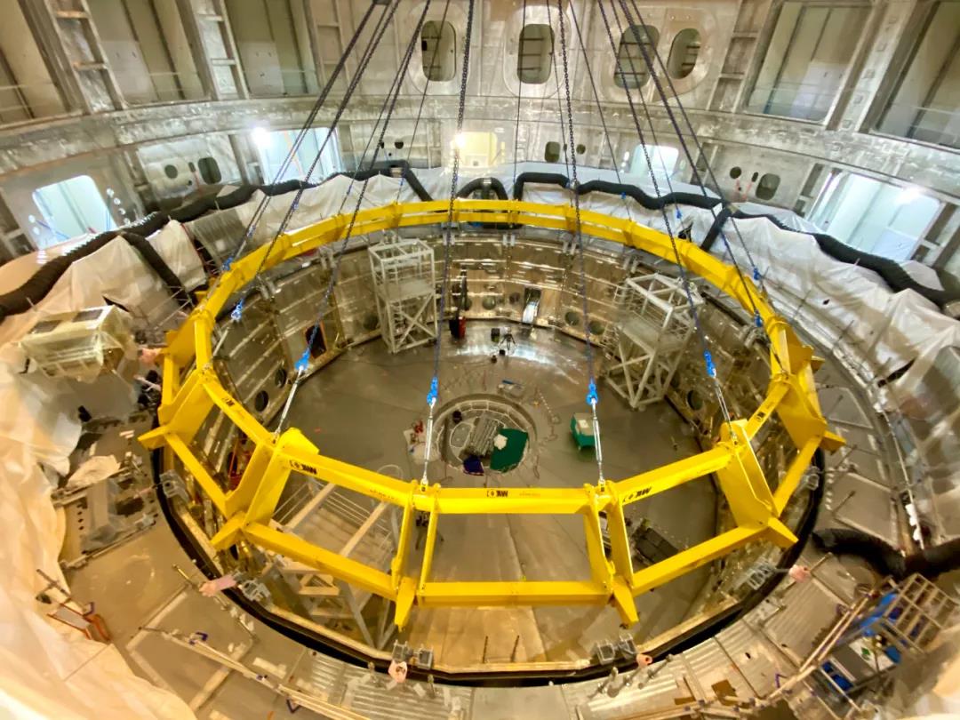 杜(du)瓦下(xia)部(bu)冷(leng)屏的(de)吊(diao)裝(zhuang)成功,為后續重(zhong)力場支(zhi)撐(cheng)、超導(dao)饋線(xian)、極(ji)向場線(xian)圈(quan)、校(xiao)正場線(xian)圈(quan)等重(zhong)要安裝(zhuang)工作的(de)相繼全(quan)面展開奠定了堅實基(ji)礎,拉開了2021年(nian)主機設(she)備(bei)安裝(zhuang)的(de)序(xu)幕。