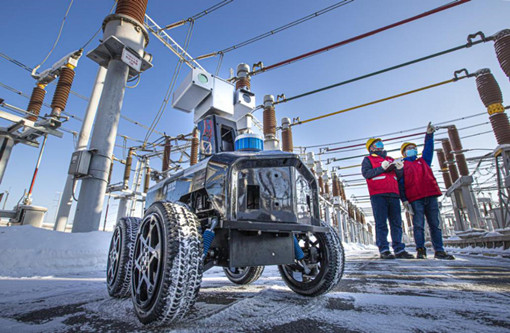 國網烏魯木齊供電公司員工運用智能機器人巡檢變電設備。