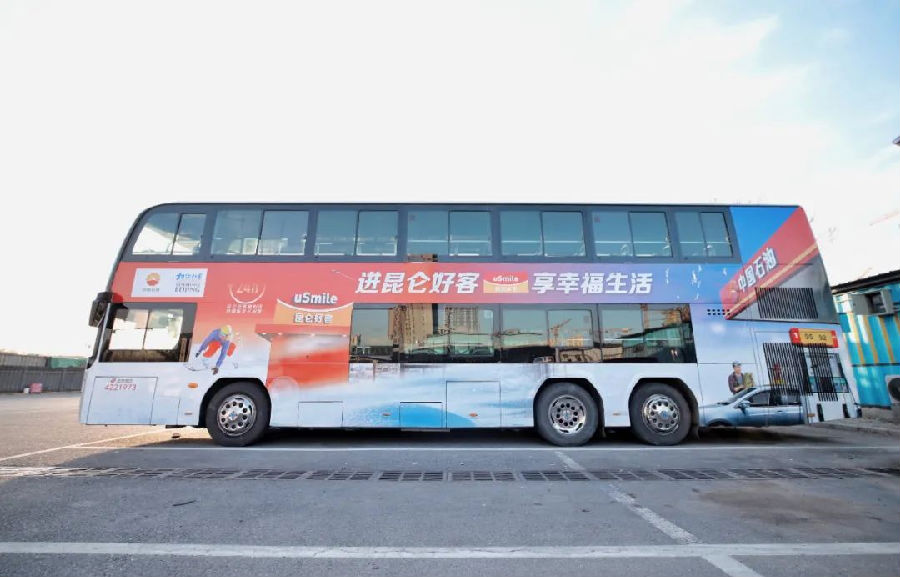 2020年(nian)11月26日,中國(guo)石油(you)“冬奧主題(ti)形象站暨特許商(shang)品(pin)零售店”啟動儀式(shi)在(zai)北(bei)(bei)(bei)京南湖加油(you)站隆重舉(ju)行。顧客可以在(zai)全國(guo)多個(ge)省(sheng)市(shi)(shi)的(de)(de)百余(yu)家(jia)便利店,買(mai)到包括圓滾滾的(de)(de)“冰墩墩”在(zai)內的(de)(de)多種冬奧特許商(shang)品(pin)。2月3日起(qi),不(bu)僅(jin)可以在(zai)北(bei)(bei)(bei)京的(de)(de)大街小巷見到帶有“昆(kun)侖好(hao)客&相(xiang)約北(bei)(bei)(bei)京”標識(shi)字樣的(de)(de)城(cheng)市(shi)(shi)道旗,還能乘坐(zuo)著車身附有“昆(kun)侖好(hao)客&相(xiang)約北(bei)(bei)(bei)京”標識(shi)字樣的(de)(de)公交(jiao)大巴在(zai)市(shi)(shi)內穿行。