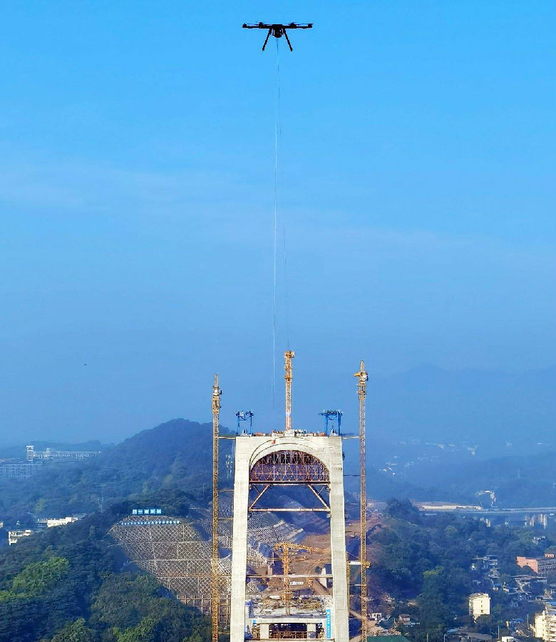 重慶郭家(jia)沱(tuo)長江大橋主跨720米(mi),橫跨長江黃金水道。為(wei)確保先導索過(guo)江施工安(an)全、經濟以及降(jiang)低對航運(yun)影響,項目團隊結合施工建設實際(ji)情況,經多(duo)次運(yun)用BIM推演模擬,對多(duo)個(ge)方案比選和專家(jia)論證,最終(zhong)采用無人機牽引先導索過(guo)江方法。