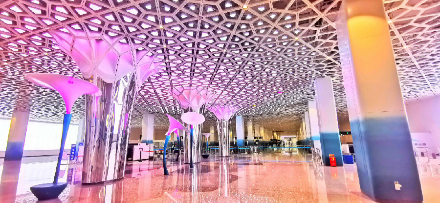 成(cheng)(cheng)(cheng)都軌道(dao)交(jiao)通18號(hao)線(xian)(xian)是(shi)服務(wu)于成(cheng)(cheng)(cheng)都市區和成(cheng)(cheng)(cheng)都天(tian)府(fu)國際(ji)機(ji)(ji)場(chang)之間的(de)(de)快線(xian)(xian),亦是(shi)一(yi)條(tiao)兼顧(gu)市域(yu)客(ke)流(liu)和機(ji)(ji)場(chang)客(ke)流(liu)的(de)(de)復合(he)線(xian)(xian),也是(shi)串聯成(cheng)(cheng)(cheng)都核(he)心主城(cheng)(cheng)(cheng)區和天(tian)府(fu)新區、空港新城(cheng)(cheng)(cheng)的(de)(de)中(zhong)軸線(xian)(xian),被譽為(wei)“成(cheng)(cheng)(cheng)都地(di)鐵第(di)一(yi)線(xian)(xian)”。作為(wei)連接天(tian)府(fu)國際(ji)機(ji)(ji)場(chang)與成(cheng)(cheng)(cheng)都中(zhong)心城(cheng)(cheng)(cheng)區的(de)(de)“門面(mian)擔當”線(xian)(xian)路(lu)(lu),18號(hao)線(xian)(xian)必(bi)須(xu)承擔起充分呈現蓉城(cheng)(cheng)(cheng)形象、表達巴蜀文化的(de)(de)重任,這(zhe)是(shi)這(zhe)條(tiao)機(ji)(ji)場(chang)線(xian)(xian)路(lu)(lu)的(de)(de)應(ying)有(you)之義。全線(xian)(xian)車站(zhan)公共區裝(zhuang)(zhuang)修設計(ji)團隊采用(yong)空間一(yi)體化打造(zao)手法,以“世界窗口(kou)·魅力川蜀”為(wei)裝(zhuang)(zhuang)修主題,對(dui)站(zhan)內天(tian)花、墻面(mian)、柱面(mian)、地(di)面(mian)等空間進行整體構(gou)思(si),采用(yong)相互交(jiao)融、互成(cheng)(cheng)(cheng)一(yi)體的(de)(de)設計(ji)理念,營造(zao)出流(liu)暢、舒適的(de)(de)建筑裝(zhuang)(zhuang)飾藝術氛圍,獲得MUSE國際(ji)創意(yi)大獎評委們(men)的(de)(de)高度認可,并(bing)成(cheng)(cheng)(cheng)為(wei)成(cheng)(cheng)(cheng)都市具有(you)超前國際(ji)范地(di)下藝術走廊的(de)(de)代表作。