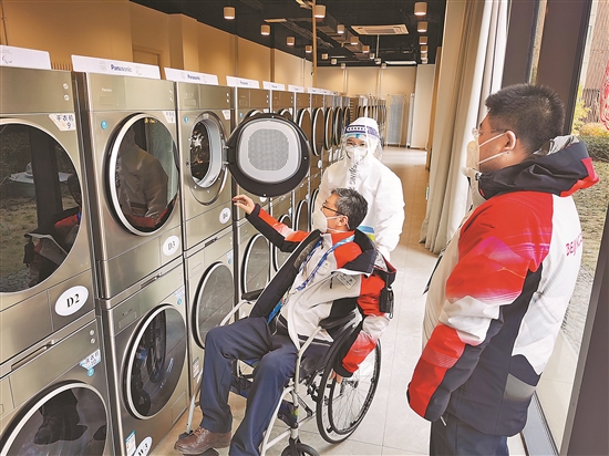 住宿方面(mian),華(hua)油陽光冬奧服(fu)務團隊(dui)開展換位體驗,工作人(ren)員坐在(zai)輪椅上模擬(ni)體驗服(fu)務全(quan)流程,及時發現問題并(bing)調整衣架、自動(dong)手(shou)部消(xiao)毒機(ji)等設施(shi)設備擺放。此外,服(fu)務團隊(dui)對公(gong)寓(yu)樓所有房(fang)間(jian)(jian)進行全(quan)面(mian)消(xiao)殺清(qing)潔(jie)(jie)后(hou),將所有床腳降低10厘米(mi),以方便運(yun)動(dong)員使用;對所有無障礙設施(shi)進行檢(jian)查(cha)、加固(gu)。截至2月27日,公(gong)寓(yu)樓轉換期共清(qing)潔(jie)(jie)房(fang)間(jian)(jian)759間(jian)(jian),清(qing)運(yun)垃(la)圾556箱(xiang),搬運(yun)家具(ju)近1200件。