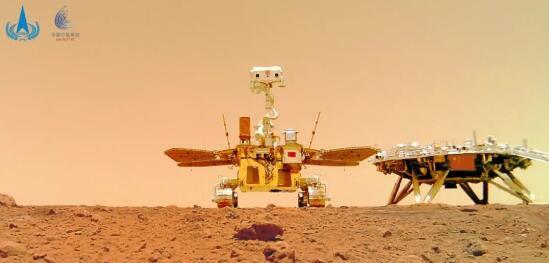 “祝融號”火星車與著陸平臺合影