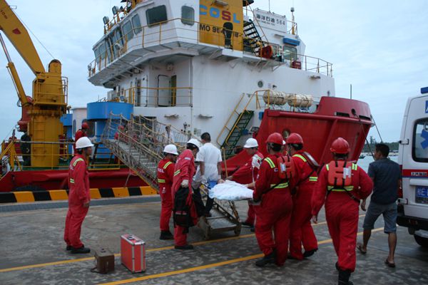 23日,廣西(xi)北海(hai)與潿洲島全線停航的(de)第三(san)天,島上一名兒童(tong)突發急(ji)性腦膜炎,急(ji)需救治(zhi)。潿洲終端(duan)接到(dao)求助后,立即向南海(hai)西(xi)部(bu)石油管理局(下稱管理局)匯報,管理局要(yao)求盡(jin)一切努力把病(bing)人送(song)至(zhi)北海(hai)市(shi)治(zhi)療(liao)。18點55分,“海(hai)洋(yang)石油564”冒著8級以上大風和洶涌的(de)海(hai)浪(lang)停靠(kao)潿洲終端(duan)碼頭(tou)。10分鐘(zhong)后,病(bing)人被成功運送(song)上了拖輪,急(ji)速駛往北海(hai)。