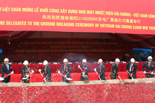3月27日(ri)上午,由中(zhong)國(guo)能建(jian)所屬中(zhong)國(guo)電(dian)力工(gong)(gong)程顧問集團(tuan)投資建(jian)設的越(yue)南(nan)海(hai)(hai)陽燃煤(mei)電(dian)廠舉行奠基儀式(shi)(shi)。越(yue)南(nan)工(gong)(gong)業及貿易部(bu)部(bu)長武輝煌,越(yue)共中(zhong)央委(wei)員、海(hai)(hai)陽省(sheng)委(wei)書記阮孟賢,中(zhong)國(guo)駐越(yue)南(nan)大(da)使(shi)館商(shang)務參贊胡鎖錦,中(zhong)國(guo)能建(jian)董事(shi)長、黨(dang)委(wei)書記汪建(jian)平,黨(dang)委(wei)常委(wei)、副總經理吳春利(li),馬來(lai)西亞駐越(yue)大(da)使(shi)、馬來(lai)西亞捷碩資源(yuan)有限公(gong)司董事(shi)長和總經理出(chu)席了儀式(shi)(shi),共同為電(dian)廠培土(tu)奠基。