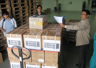 5月14日傍晚時分,天津物流接到緊急通知,天津市衛生局要組織醫療小組前往災區,隨機攜帶一批急救藥品。應急小組高度重視,立即組織人員緊急配貨,連續作戰一直忙碌到15日早上7點。15日下午,應急小組又接到緊急通知,要求立即接受一批急救止痛藥品空運災區。這時的物流現場已不分領導和員工,大家形成了一支堅強的團隊,快速而有序地進行收貨、驗收、包裝,一直戰斗到晚10點多完成集貨待發。一個多小時后接到指令,六名值班員工又將急救藥品緊急送至機場,辦理發運手續。由于這批藥品屬于國家管制藥品,公司又派出兩位專職押送人員,隨著這批急救藥品一起于5月16日早晨飛往成都。