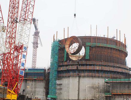 中核建設承建的方家山核電1號機組設備閘門套筒一次吊裝成功