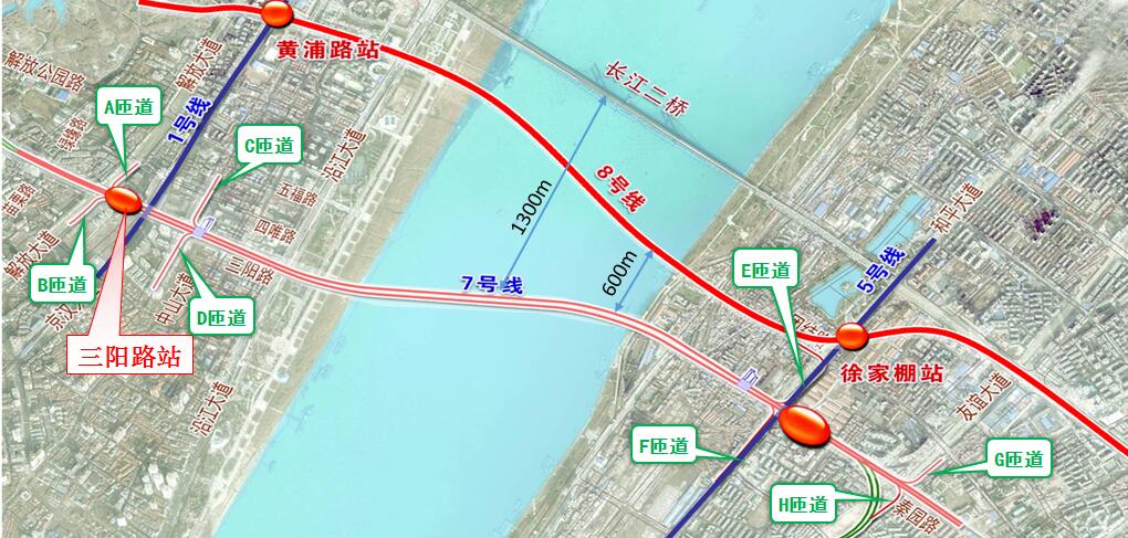 三(san)陽(yang)路(lu)越(yue)(yue)江(jiang)隧(sui)道(dao)(dao)位(wei)于(yu)長(chang)江(jiang)二橋(qiao)上游(you)約1.3公里處,連接漢口(kou)三(san)陽(yang)路(lu)和武昌(chang)秦園路(lu),是城(cheng)市道(dao)(dao)路(lu)和軌道(dao)(dao)交通區(qu)間合建隧(sui)道(dao)(dao)。道(dao)(dao)路(lu)隧(sui)道(dao)(dao)主線(xian)長(chang)4660米,合建段大盾構區(qu)間長(chang)2590米,隧(sui)道(dao)(dao)直徑達15.2米,是穿(chuan)越(yue)(yue)長(chang)江(jiang)最寬的隧(sui)道(dao)(dao)。