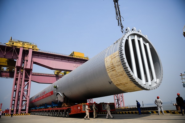 4月28日,江蘇鎮江,工人在給260萬噸/年沸騰床渣油鍛焊加氫反應器做發運前的準備工作。新華社記者李響 攝