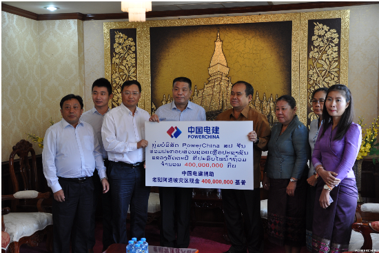 災情(qing)發生后,中(zhong)國(guo)電建立(li)即對在老撾各子企業發出獻愛(ai)心倡(chang)議,自發組織捐(juan)款捐(juan)物(wu),弘揚中(zhong)華(hua)民族(zu)“一方有難、八方支(zhi)援(yuan)”的優(you)良(liang)傳統,踐行央企社會責任(ren)。據統計,中(zhong)國(guo)電建在老撾各成員企業捐(juan)款現金金額共(gong)計約(yue)14.25億(yi)基(ji)普(合(he)人民幣約(yue)113.8萬元),向災區捐(juan)贈(zeng)物(wu)資總價(jia)值約(yue)2億(yi)基(ji)普(合(he)人民幣約(yue)16萬元),捐(juan)贈(zeng)衣物(wu)等200公(gong)斤。