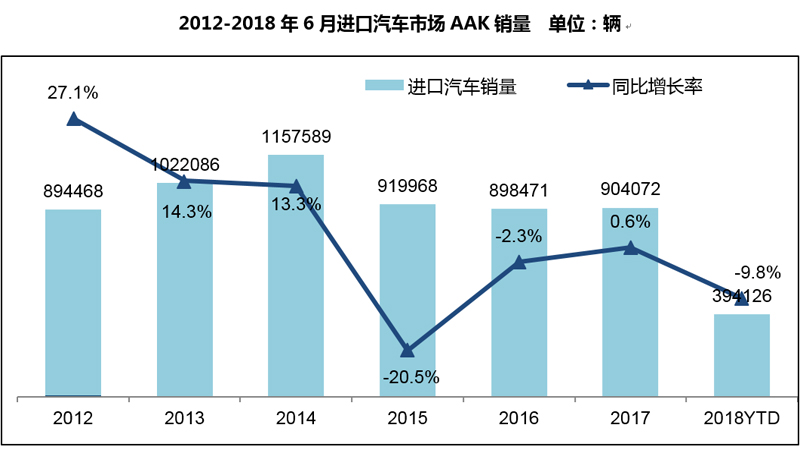 2018年上半(ban)年,在中美貿易摩擦(ca)及(ji)關稅政策(ce)調整背景下,中國進口汽車(che)市(shi)場波動較(jiao)大(da),呈現供需雙降(jiang),行(xing)業厙存大(da)幅波動,市(shi)場結構(gou)深度調整等(deng)特(te)征。