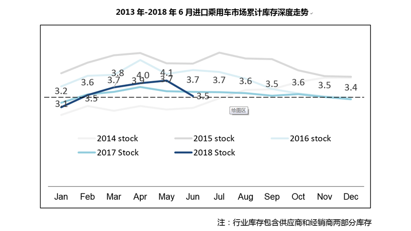 從庫(ku)(ku)(ku)存(cun)(cun)(cun)方面(mian)看(kan),受關稅政策影響行(xing)業庫(ku)(ku)(ku)存(cun)(cun)(cun)絕對量和(he)庫(ku)(ku)(ku)存(cun)(cun)(cun)深度(du)波(bo)動較大,2018年(nian)6月(yue)(yue)行(xing)業庫(ku)(ku)(ku)存(cun)(cun)(cun)[供應(ying)商(shang)庫(ku)(ku)(ku)存(cun)(cun)(cun)+經(jing)銷(xiao)商(shang)庫(ku)(ku)(ku)存(cun)(cun)(cun)]深度(du)為3.5個(ge)月(yue)(yue),相比2017年(nian)3月(yue)(yue)的(de)3.7個(ge)月(yue)(yue),下降(jiang)0.2個(ge)月(yue)(yue)。根據中國汽車流通協(xie)會的(de)經(jing)銷(xiao)商(shang)庫(ku)(ku)(ku)存(cun)(cun)(cun)調(diao)研顯示(shi),2018年(nian)6月(yue)(yue)進口(kou)經(jing)銷(xiao)商(shang)庫(ku)(ku)(ku)存(cun)(cun)(cun)為1.83個(ge)月(yue)(yue),高于經(jing)銷(xiao)商(shang)庫(ku)(ku)(ku)存(cun)(cun)(cun)水平線1.5個(ge)月(yue)(yue)的(de)合理庫(ku)(ku)(ku)存(cun)(cun)(cun)。