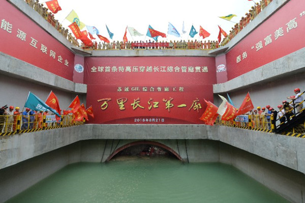 8月21日9時許,長江北岸,江蘇(su)南(nan)通,巨大的“卓越號”盾構機翻卷(juan)著泥(ni)漿駛出(chu)過江隧道。這一刻,1000千伏淮南(nan)—南(nan)京—上海交流(liu)特(te)高壓輸變電(dian)工(gong)程蘇(su)通GIL(氣(qi)體絕緣輸電(dian)線路)綜合管廊隧道工(gong)程貫通。