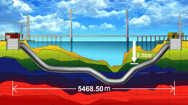 蘇通(tong)GIL綜合管廊工(gong)程(cheng)的(de)(de)(de)兩回1000千伏(fu)GIL管線,單相長約5.8公(gong)里,6相總(zong)長約35公(gong)里。此次貫通(tong)的(de)(de)(de)隧道(dao)工(gong)程(cheng)起于南(nan)岸(蘇州(zhou))引接站,止(zhi)于北(bei)岸(南(nan)通(tong))引接站,長5468.5米,是目前國內江河埋(mai)深(shen)最(zui)深(shen)、水(shui)壓最(zui)高(gao)的(de)(de)(de)隧道(dao)。其埋(mai)深(shen)最(zui)深(shen)處達-74.83米;水(shui)壓最(zui)高(gao)達0.8兆帕,是大(da)(da)氣壓的(de)(de)(de)8倍,相當于一個(ge)手指甲(jia)蓋大(da)(da)小的(de)(de)(de)面積承受近10公(gong)斤的(de)(de)(de)重量(liang)。江中地質條件復雜,施工(gong)難(nan)度大(da)(da),掘(jue)進需穿(chuan)越長江大(da)(da)堤及有害(hai)氣體層,沉(chen)降(jiang)控制(zhi)、風險(xian)防控要求極高(gao)。