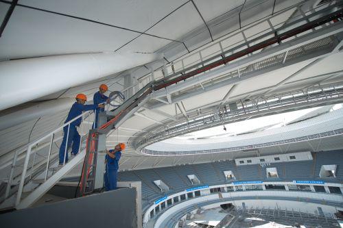 施工(gong)人員在VIP貴賓室進行裝機作(zuo)業