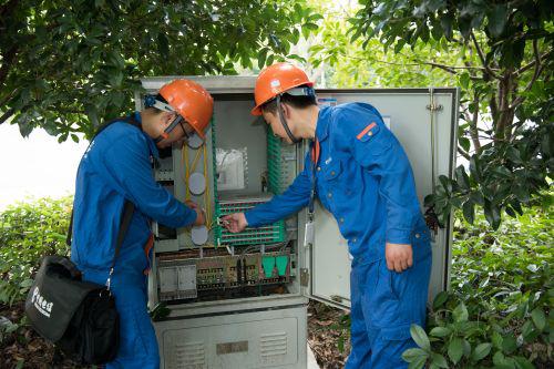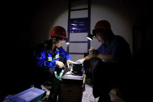 中國電信施工人員在(zai)小蓮(lian)花內鋪(pu)設光(guang)纜