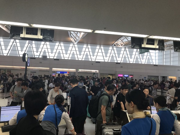 9月8日(ri)的(de)札(zha)幌機(ji)場國(guo)際候(hou)機(ji)樓(lou)里已(yi)是人山人海,東(dong)航(hang)浦東(dong)飛(fei)(fei)往札(zha)幌的(de)MU279航(hang)班已(yi)于上(shang)午8時46分起飛(fei)(fei)。