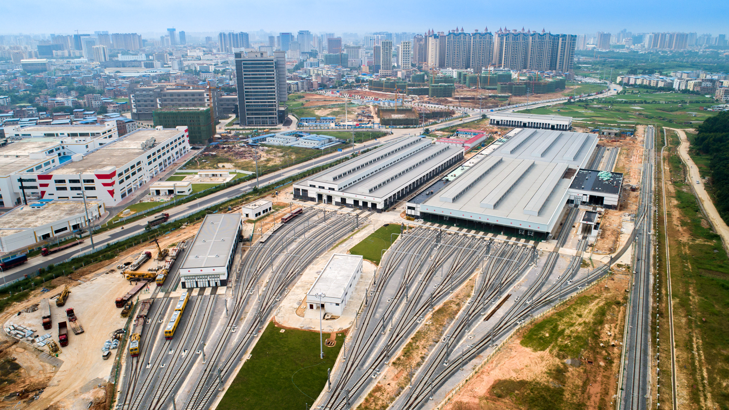 已(yi)進行局部綠化心(xin)圩車輛段鳥瞰圖