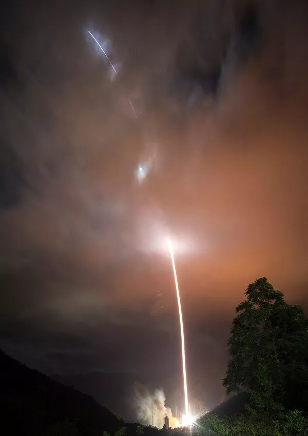 長征三號乙/遠征一號運載火箭航跡閃耀夜空