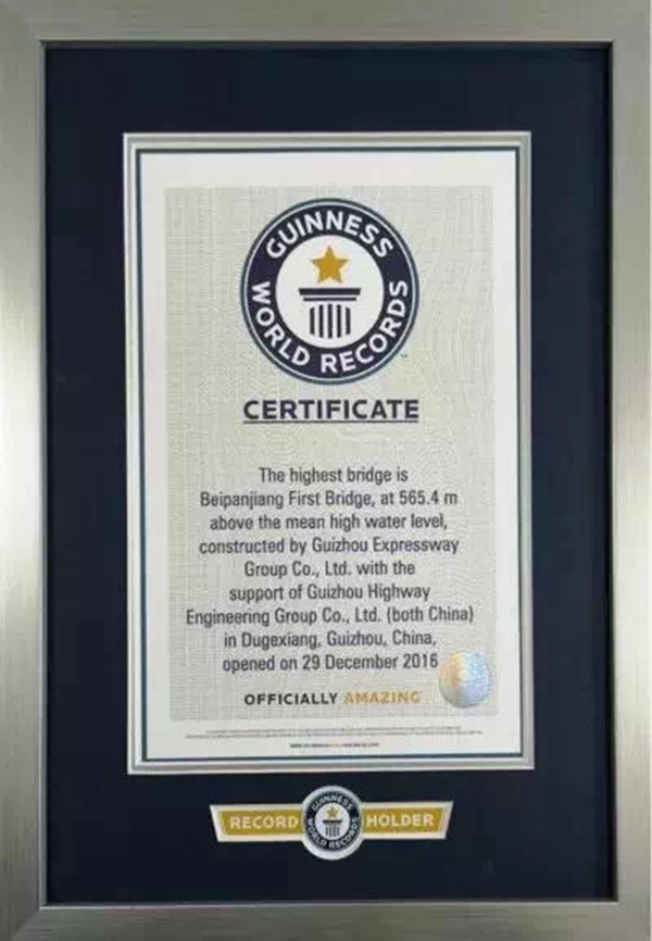 近日,杭瑞高速畢都北盤江(jiang)(jiang)第(di)一橋(qiao),經世界(jie)(jie)紀(ji)錄認證機構(gou)——吉尼(ni)斯(si)世界(jie)(jie)紀(ji)錄有(you)限(xian)公司(si)認證,北盤江(jiang)(jiang)第(di)一橋(qiao)橋(qiao)面距江(jiang)(jiang)面垂(chui)直高度達565.4米,榮(rong)獲“世界(jie)(jie)最高橋(qiao)”之(zhi)稱,載入世界(jie)(jie)紀(ji)錄大全史冊。該橋(qiao)還于2018年榮(rong)獲世界(jie)(jie)橋(qiao)梁界(jie)(jie)“諾貝爾獎”——古斯(si)塔夫(fu)金獎。